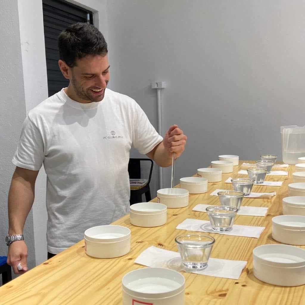 Cassio Aguiar Caneparo, é um degustador e torrador profissional de café, certificado internacionalmente pelo CQI – Coffee Quality Institute com o título de Q-Grader. Atua como Juiz de avaliação técnica e sensorial do Campeonato Brasileiro de Barista, com sólida experiência na análise da qualidade e excelência do sabor na xícara. Com forte conexão com a origem, possui uma vivência prática nas lavouras e nos processos de classificação de grãos. Em sua formação técnica, concluiu o CVA – Coffee Value Assessment (primeira turma no Brasil), além dos cursos com certificação internacional da SCA – Specialty Coffee Association, nas áreas de Sensory Skills e Roasting.